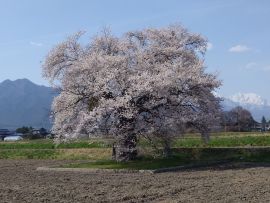 山の見える風景、花のある風景、田園・屋敷林 場所:大町市 撮影者:常念坊